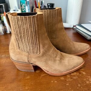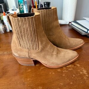 Even the most committed cowgirl boot fans know that there are times, places, and outfits where easy does it — elegantly. A Chelsea boot with a classic 0 toe and 2” heel, The Taylor checks all the boxes for style and versatility. Its modern, low profile and ankle-height shaft fit effortlessly under slimmer jeans, and its leather-lined elastic gores and sleek pull tab provide easy-on access. Where the West meets the city, The Taylor shines.