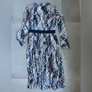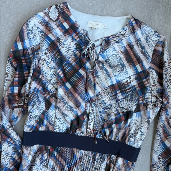 Beautiful & classy long TES BAKER dress. Pleated skirt, tie front, long sleeve, fitted around waste line. Stunning for a wedding or special event. Perfect condition, worn once. If you are familiar with TED BAKER, it’s a size 3 which is like a size Medium. Check website for exact sizing.