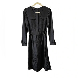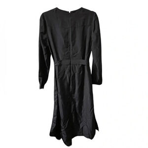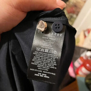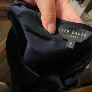 Pre owned excellent condition. The only flaw is the button on the left arm cuff is missing but there is a spare button on the care tag inside the dress! It just needs to be sewn on. This is a gorgeous satin feel long sleeve midi dress. Has side slits and wrap belt/wrap at waist. Ted baker size 3= WOMENS size 8.