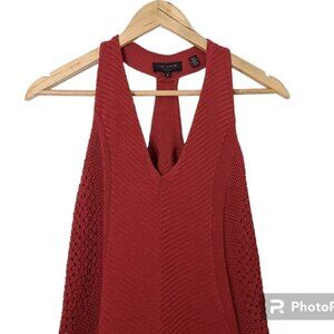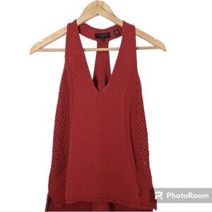 TED BAKER Abrin Red Crochet Knit V-Neck Tops Women's Size Ted 3/ US 8