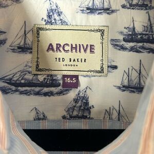 TED BAKER Archive Men's Button Front Shirt Paisley Patter Blue Size 16.5 Neck