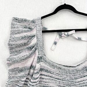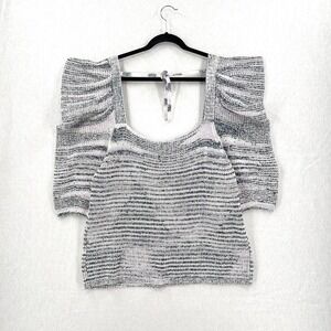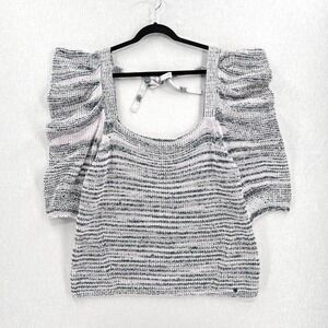 TED BAKER Aspel Puff Sleeve Sweater Womens 12-14 White Gray Marled Tie Back Knit