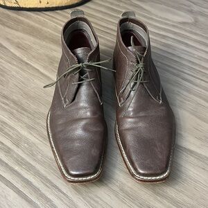 TED BAKER BROWN LEATHER LACE UP SQUARE TOE BOOTS 9