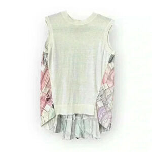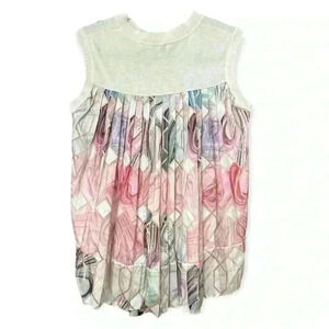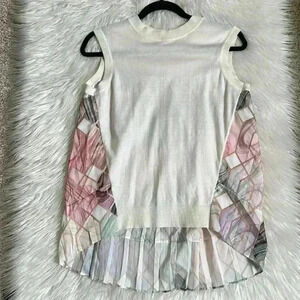 TED BAKER Silk Cotton Blend Clariey Sea of Clouds Top Size 0. This sleeveless tank top has a cotton, polyester, and silk material. It has round neckline and long pleated fabric at the back. Super cute top with unique design. Great for everyday casual street wear. It is Size 0 but it bigger that its size so please check out the measurements below.