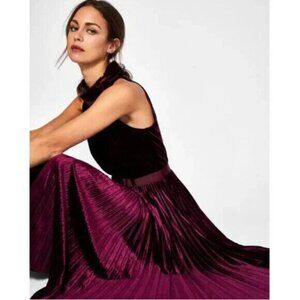 TED BAKER Cornela Pleated Velvet Midi Dress ~ Oxblood Burgundy TB4 US 5