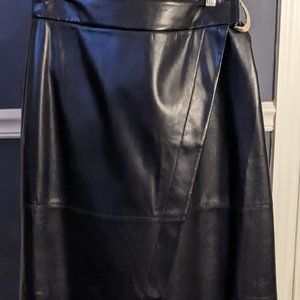 Add a touch of glamour to your wardrobe with this runway-ready faux leather midi skirt that is sure to impress.