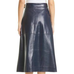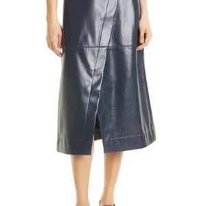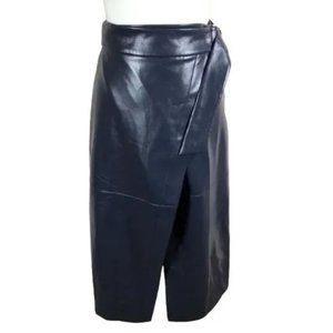 TED BAKER Elii A Line Wrap Faux Leather High Waisted Midi Blue Vegan Skirt