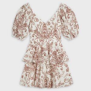 TED BAKER Elizaaa Broderie Mini Dress With Puff Sleeves White Print 8-10 US NWT