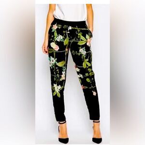 TED BAKER Floral Pant size 2 Black side pockets back zipper pocket