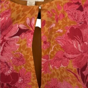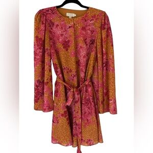 Ted Baker Floral Print mini dress with flare sleeves and tie waist in Excellent pre-owned condition. Colors orange/pink size 2 US Size 6 Added the chart for reference