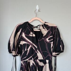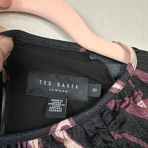 TED BAKER Gilliaa Abstract Print Mini Fit & Flare Dress Puff Sleeves Size 0 US 2