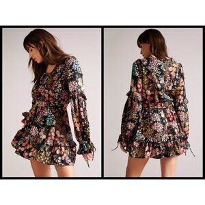 💕TED BAKER💕 Hendria Ruffled Crepe Mini Dress ~ Black Floral Print 4-6 US NWT