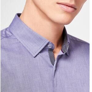 TED BAKER IFEL Semi Plain Shirt Micro Dot Navy Size 6 XXL XL Button down L/S