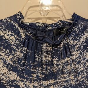 TED BAKER Iggiey Metallic Burnout Midi Dress, 3/4 Sleeves Navy Size 1 US 4 NWT