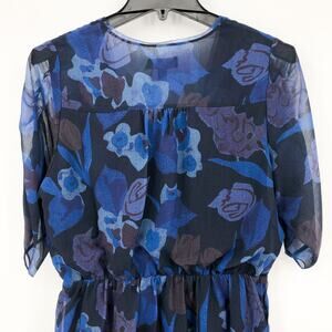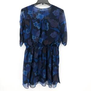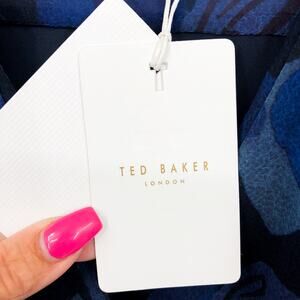 TED BAKER Juleah Mini Dress 4 Dark Navy Floral V-Neck Ruched Sleeve Detail NWT