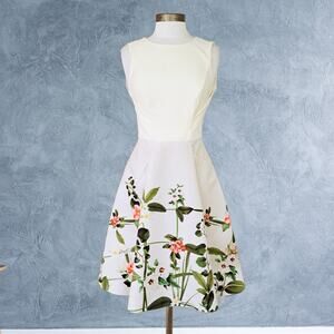 TED BAKER Karoli Ivory Secret Trellis Floral A Line Dress Size 6 Wedding Party