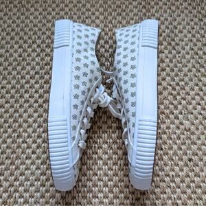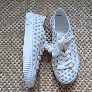 This is a pair of Ted Baker Kimia Metropolis Daisy Print sneakers. Cream color with a cute daisy print. Size 38, which according to Ted Baker size chart is US 7.5. Never worn - slight residue from the price sticker on the insole, as pictured.