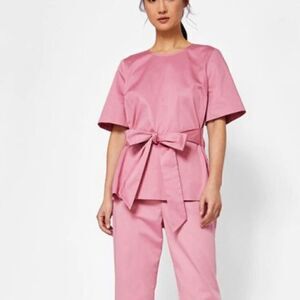 TED BAKER Cottoned On Laarin Tie-waist Tunic kimono sleeves dusty pink top shirt. Take a bow in the elegant LAARIN top. Kimono style sleeves add an Oriental touch, while the delicate round neck and waist-cinching tie adds instant glamour to any look. TED SIZE O which is a US2