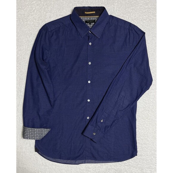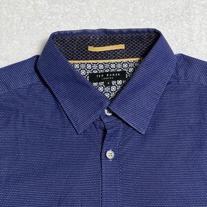 TED BAKER LONDON Button Down Shirt Men's 4 L Blue Cotton Stretch