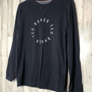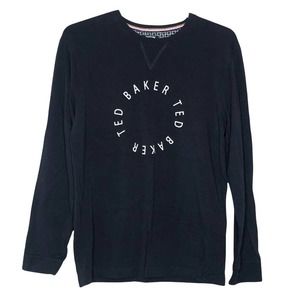TED BAKER LONDON Graphic Branded Long Sleeve Shirt Casual Loungewear Navy M