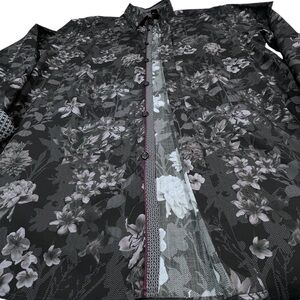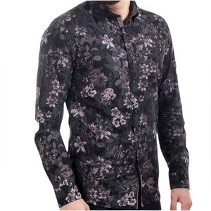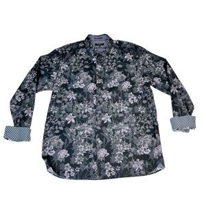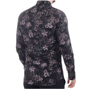 TED BAKER LONDON Long Sleeve Grey Pink Black Floral Shirt Men's XL