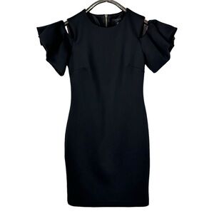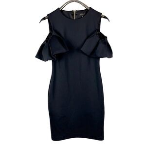 TED BAKER LONDON SALNIE BLACK COLD SHOULDER RUFFLE SHEATH COCKTAIL DRESS
