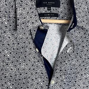 TED BAKER LONDON SLIM FIT FLORAL PRINT DRESS SHIRT SIZE 15.5. fits us small. Gently used condition in a great design. 3- buttons cuff with flip back pattern. Measures 21" across pit to pit so fits a 40" chest, 18" shoulder to shoulder, 30" long nape to hem.