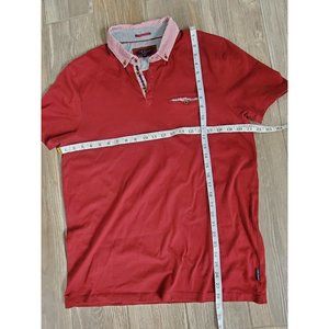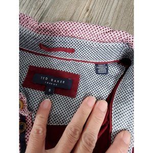 TED BAKER LONDON polo, burgundy with geo pattern collar and pocket accent, 5/XL. EUC