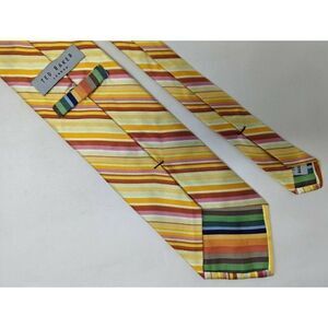 TED BAKER LONDON SILK TIE BRIGHT COLORFUL ORANGE RED YELLOW STRIPE 3.75"
