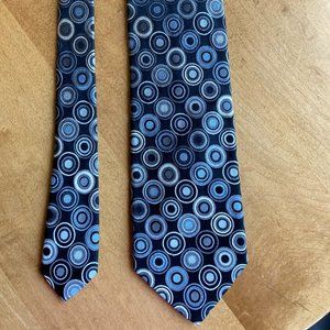 Black tie with concentric circles in shades of black, gray and white. Excellent condition. Approximately 3 3/4" by 61".
