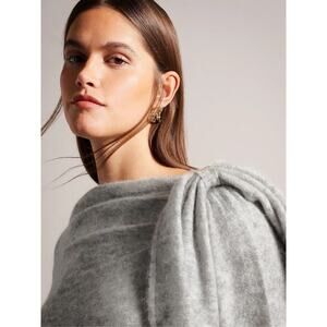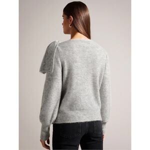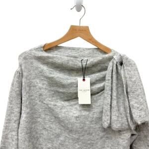 TED BAKER Larbow Statement Bow Sweater Gray Wool Knit Pullover Women's 4/US 10