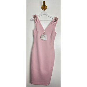 TED BAKER London Belliah Bow Shoulder Body-Con Dress in Dusky Pink Size US 2 NWT