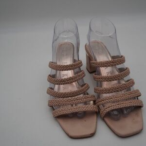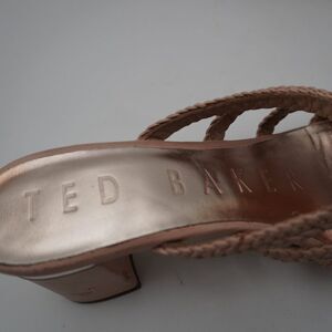 Pre-owned without tags or box TED BAKER London “Emmalii” Strappy Slide Sandal Nude Pink Leather Braided. Size 39.5. Step out in style with these Ted Baker Nude Pink braided sandals. Perfect for any occasion. These shoes offer both elegance and comfort. The shoe showcases multiple braided straps across the top, creating an elegant, layered effect, and has open toe design for a sophisticated look.