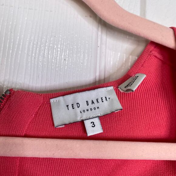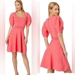 TED BAKER London Hayliy Dress Puff Sleeve Knit Skater Pink TB Size 3 US 8