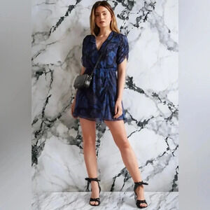 TED BAKER London Juleah Ruched Sleeve Blue Floral Dress, NWOT, Size 5 (Juniors)