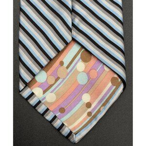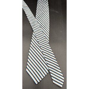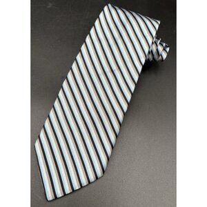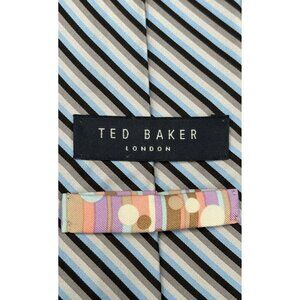 TED BAKER London Men's Tie 100% Silk USA Luxury Designer STRIPED Blue Gray GUC