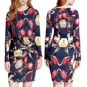 TED BAKER Long Sleeve Sheath Dress Twisted Knot Ruched Floral Cocktail Office