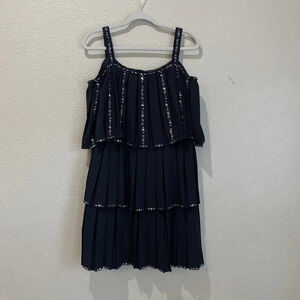 TED BAKER Meltea Embellished Black Tiered Dress US Size 8 $439 Flutter Sleeves