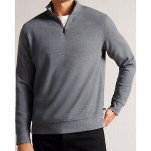 Elevate your wardrobe with this stylish Ted Baker Quarter Zip Knit Funnel Sweater. The gray marl color and solid pattern make it a versatile piece for any occasion, whether it's a formal business meeting or a casual party. The sweater features a tight-knit cotton blend fabric with a knit style that adds to its unique texture. The long sleeves and funnel neckline make it comfortable to wear during winter, summer, fall, or spring.