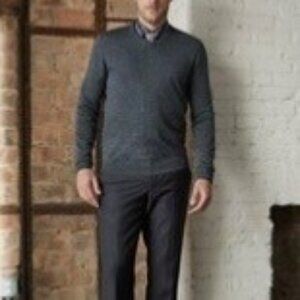 TED BAKER London Batatak Slim Fit Gray V-neck 100% Merino wool Sweater ***Size 4 = L seems very slim like a normal Medium, Please check measurements.