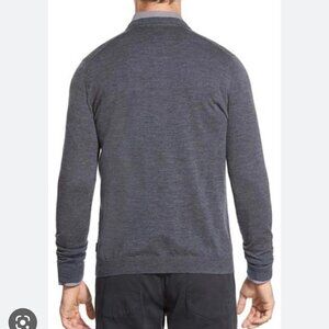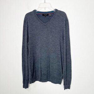 TED BAKER Men Batatak Slim Fit Gray V-neck 100% Merino wool Sweater Size L