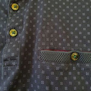 Ted Baker Mendosa polo shirt in navy blue. Size is 6 which translates to XL per their website. Fits more like a large. Very good condition. No holes, rips or stains.