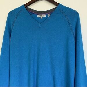 TED BAKER Men’s Trim Fit Cotton V-Neck Sweater Blue Large