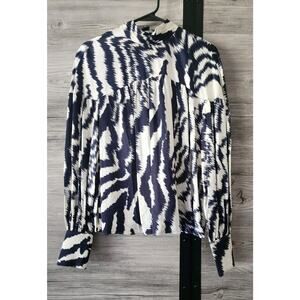 TED BAKER NUURAS BLOUSE HIGH NECK ZEBRA STRIPE IVORY & NAVY BLUE SIZE 1