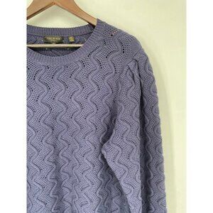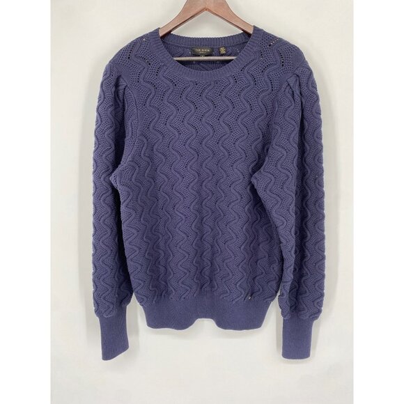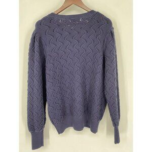 TED BAKER PUFF SLEEVE KNIT/CROCKET PULLOVER SWEATER COTTON SIZE 5 RIBBED CUFFED