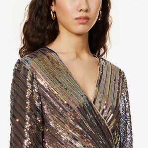 Bring some sparkle to your occasionwear with our PIPII dress. Adorned with sequins, this wrap style design is secured with a zip fastening and, whilst the flattering V neck plunge neckline elevates the design. Pair with killer heels for the full effect.