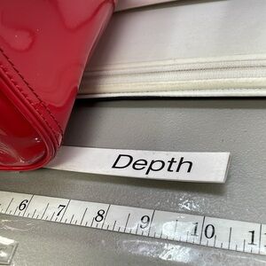 TED BAKER Purse Red Patent Bag Pockets Zip Gold Tone Hardware Satchel