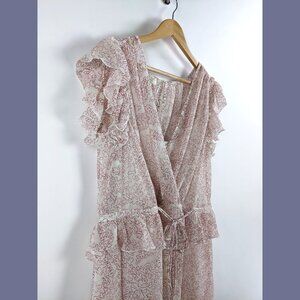 TED BAKER Size 3 / US 8 Evelyna Print Ruffle Sleeve Cinch Mini Dress Ivory Coral