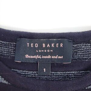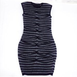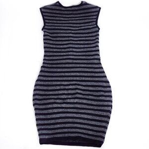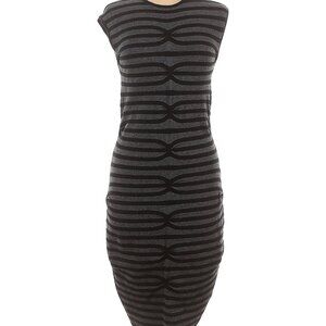 TED BAKER Striped Black Gray Bodycon Sheath Stretch Knit Dress