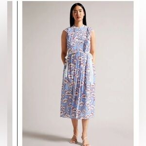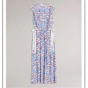 TED BAKER Tindraa Floral Frill Midi Dress Size 5 US 12 Feminine Ruffle Coquette